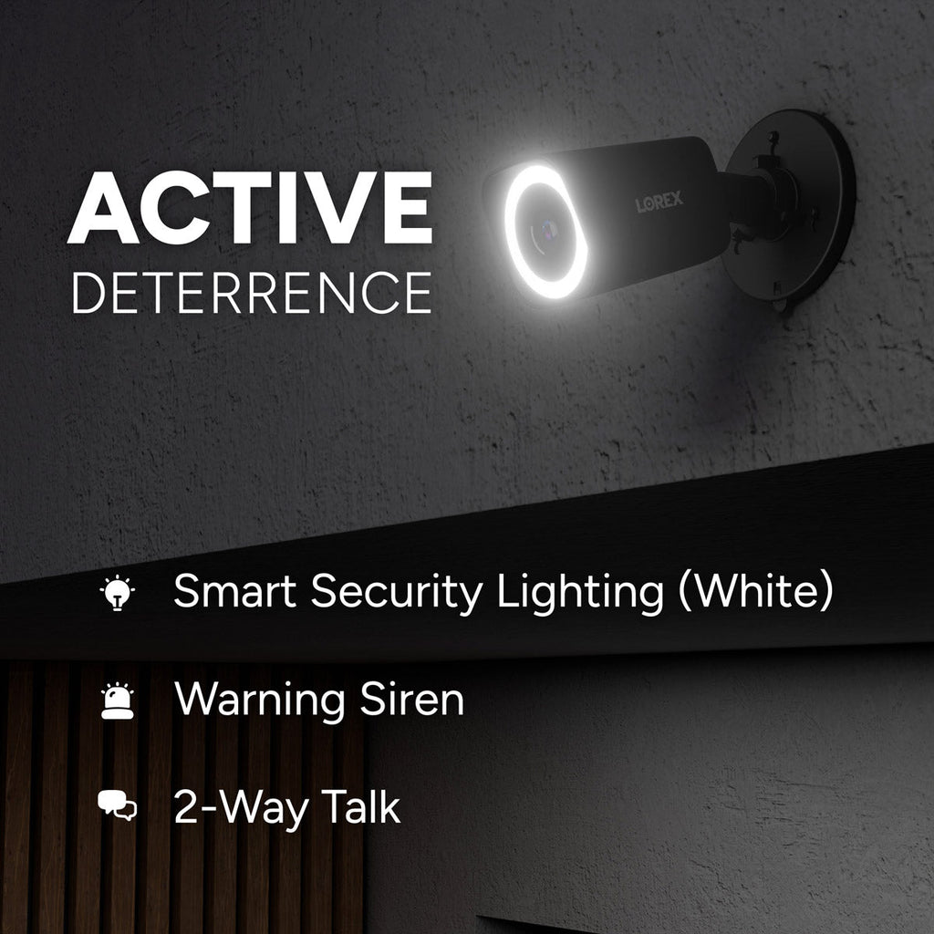 Feel secure and connected, wherever you are. With sharp 4K video, smart AI detection, and active deterrence features like the unmissable white Smart Security Lighting band and a warning siren, you’ll have the confidence of knowing your home or business is protected around the clock.