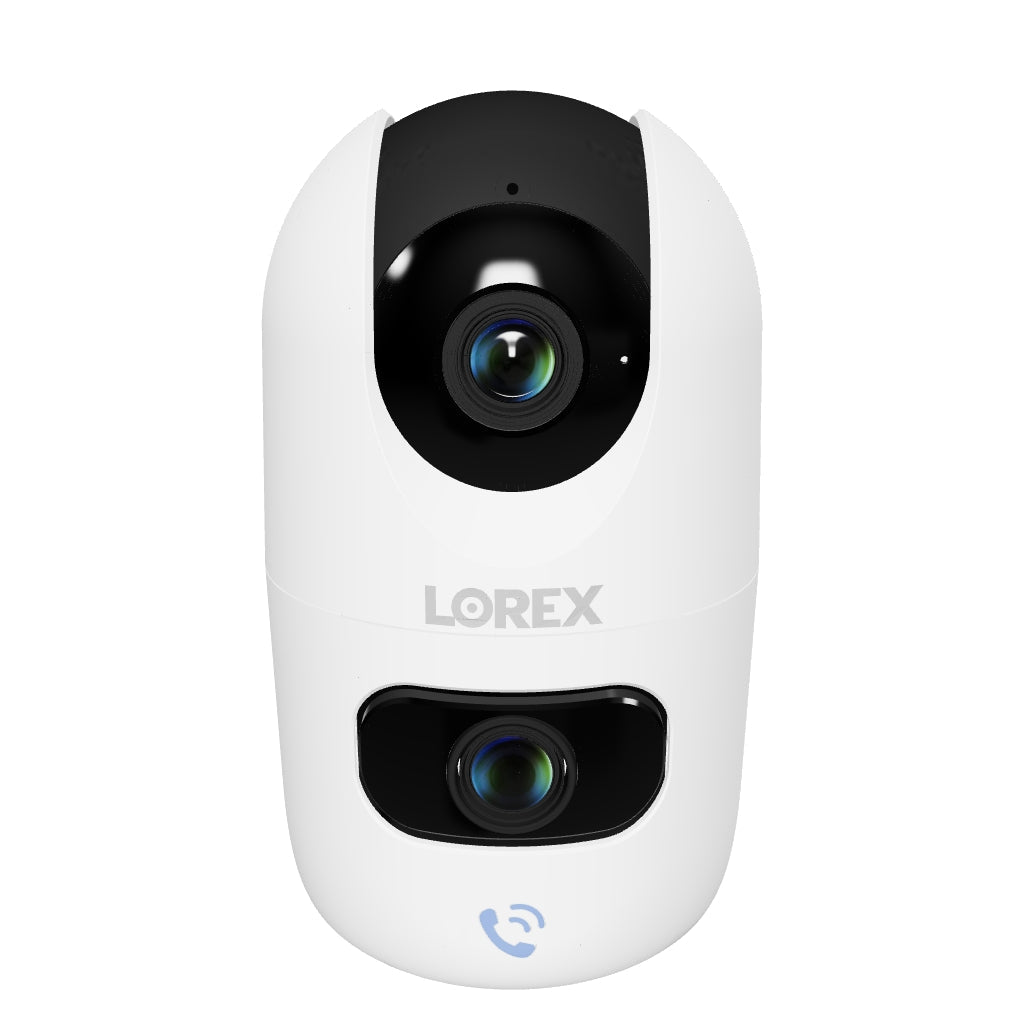 The Lorex Connect Series 2K Dual Lens Indoor Wireless Camera is designed to fit seamlessly into any lifestyle. Whether you're checking in on pets, keeping an eye on loved ones, or simply looking for added security, this camera adapts to your needs with plug and play versatility or easy mounting options. With dual lenses that can see in two different directions at one, two-way talk, a touchpoint for instant communication through the Lorex Connect app, and enhanced privacy controls, this smart little camera will bring you peace of mind—whenever, wherever, and however you need it.